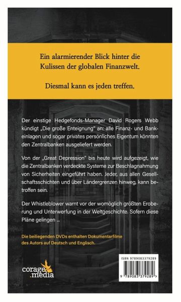 You will own nothing: Ein alarmierender Blick hinter die Kulissen der globalen Finanzwelt. Diesmal kann es jeden treffen. Der einstige Hedge-Fonds-Manager David Rogers Webb kündigt "Die große Enteignung" an: alle Finanz- und Bankeinlagen und sogar privates persönliches Eigentum könnten den Zentralbanken ausgeliefert werden. Von der Great Depression bis heute wird aufgezeigt, wie die Zentralbanken verdeckte Systeme zur Beschlagnahmung von Sicherheiten eingeführt haben. Jeder, aus allen Gesellschaftsschichten und über Ländergrenzen hinweg, kann betroffen sein. Der Whistleblower warnt vor der womöglich größten Eroberung und Unterwerfung in der Weltgeschichte, sollten diese Pläne auch nur teilweise gelingen ... NEU: Die 3. Auflage erscheint mit zwei DVDs mit der Dokumentation "The Great Taking - Die Große Enteignung" auf Deutsch und Englisch sowie der Reportage "STOP IT!" mit deutschen Untertiteln.