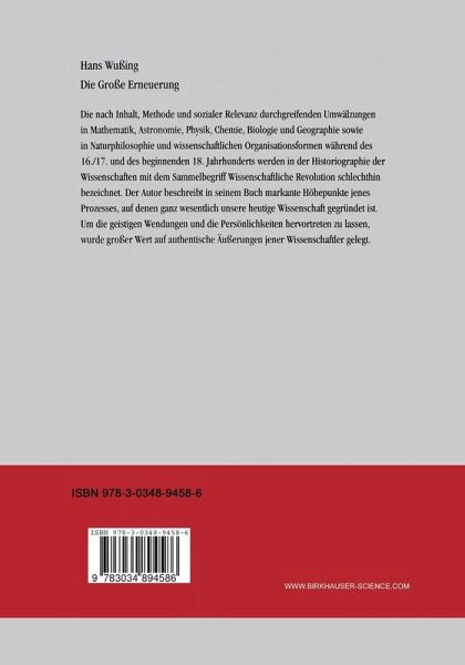 Die nach Inhalt, Methode und sozialer Relevanz durchgreifenden Umwälzungen in Mathematik, Astronomie, Physik, Chemie, Biologie und Geographie sowie in Naturphilosophie und wissenschaftlichen Organisationsformen während des 16./17. und des beginnenden 18. Jahrhunderts werden in der Historiographie der Wissenschaften mit dem Sammelbegriff Wissenschaftliche Revolution schlechthin bezeichnet. Der Autor beschreibt in seinem Buch markante Höhepunkte jenes Prozesses, auf denen ganz wesentlich unsere heutige Wissenschaft gegründet ist. Um die geistigen Wendungen und die Persönlichkeiten hervortreten zu lassen, wurde großer Wert auf authentische Äußerungen jener Wissenschaftler gelegt.