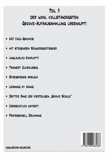 Die große Groove Schule 3 - Jazz IndependenceFinde einen sicheren und stressfreien Einstieg in die Jazztechnik am Drumset. Oder Du bist ein Profi und möchtest deine Fähigkeiten in dieser Technik weiter ausbauen und fit halten. Dieses Buch ist mit seinem sicheren Aufbau vom fortgeschrittenen Schüler bis zum Pofi gleichermaßen geeignet. Durch die besondere Notationsform schlägt dieses Werk die Brücke zwischen Drummer jeglichen Fortschritts und ist somit ein wertvolles Standardwerk für den Bereich Jazz & Swing. Auch dieser Band von der Reihe: "Die große Groove Schule" behandelt das Thema lückenlos und so unglaublich umfangreich wie wohl kaum ein anderes Werk. Ein: "must have" für jeden Drummer!