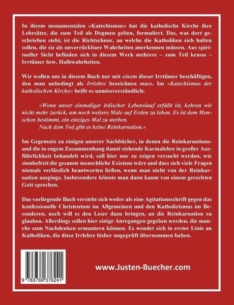 In ihrem monumentalen »Katechismus« hat die katholische Kirche ihre Lehrsätze, die zum Teil als Dogmen gelten, formuliert. Das, was dort geschrieben steht, ist die Richtschnur, an welche die Katholiken sich halten sollen, die sie als unverrückbare Wahrheiten anerkennen müssen. Aus spiritueller Sicht befinden sich in diesem Werk mehrere - zum Teil krasse - Irrtümer bzw. Halbwahrheiten. Wir wollen uns in diesem Buch nur mit einem dieser Irrtümer beschäftigen, den man unbedingt als Irrlehre bezeichnen muss. Im »Katechismus der katholischen Kirche« heißt es unmissverständlich: »Wenn unser einmaliger irdischer Lebenslauf erfüllt ist, kehren wir nicht mehr zurück, um noch weitere Male auf Erden zu leben. Es ist dem Menschen bestimmt, ein einziges Mal zu sterben. Nach dem Tod gibt es keine Reinkarnation.« Im Gegensatz zu einigen unserer Sachbücher, in denen die Reinkarnations- und die in engem Zusammenhang damit stehende Karmalehre in großer Ausführlichkeit behandelt wird, soll hier nur zu zeigen versucht werden, wie sinnbefreit die gesamte menschliche Existenz wäre und dass sich viele Fragen niemals verlässlich beantworten ließen, wenn man nicht von der Reinkarnation ausginge. Insbesondere könnte man dann kaum von einem gerechten Gott sprechen. Das vorliegende Buch versteht sich weder als eine Agitationsschrift gegen das konfessionelle Christentum im Allgemeinen und den Katholizismus im Besonderen, noch will es den Leser dazu bringen, an die Reinkarnation zu glauben. Allerdings sollen hier einige Anregungen gegeben werden, die manche zum Nachdenken ermuntern können. Es wendet sich in erster Linie an Katholiken, die diese Irrlehre bisher ungeprüft übernommen haben.