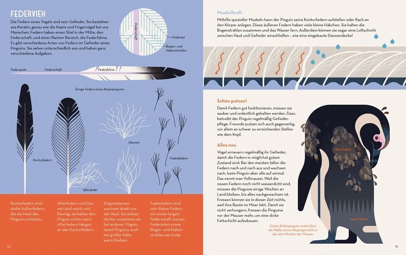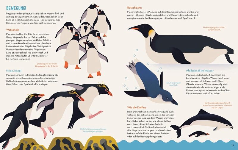 Bei über 15 Arten gibt es noch viel mehr Erstaunliches über diese flugunfähigen Vögel in diesem wunderschön illustrierten Sachbuch zu entdecken.