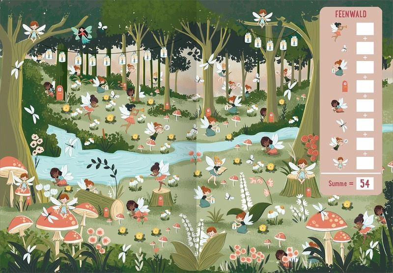 Dieses großformatige Wimmel-Zähl-Buch steckt voller Zähl- und Suchaufgaben, die dich herausfordern. Du begibst dich auf eine Reise in ganz verschiedene Zauberwelten. Dein Ziel: Alle Zauberwesen in ihren verschiedenen Lebensräumen zu zählen! Schaffst du es, den Überblick zu behalten und alle Zählaufgaben zu meistern?