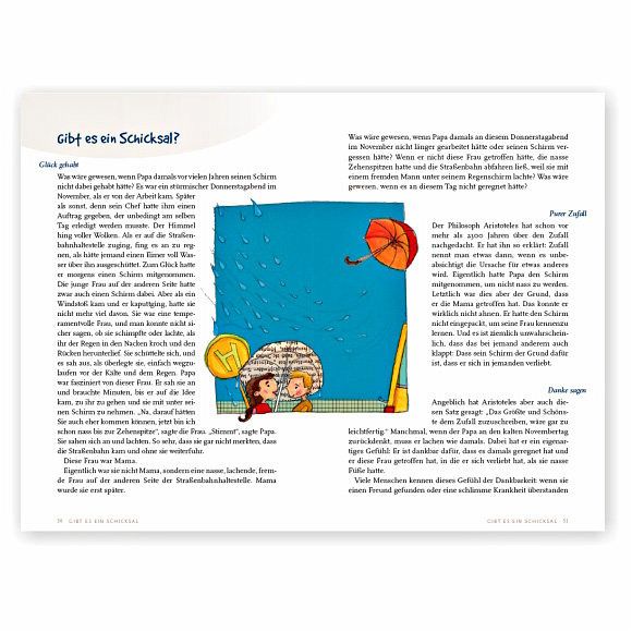Was ist Glück? Gibt es ein Schicksal? Warum müssen wir sterben? Gibt es Gott? Wie lange dauert die Unendlichkeit? Viele große Fragen, die kleinen Philosophen im Kopf herumschwirren, beleuchtet Julia Knop aus unterschiedlichen Perspektiven. So werden Kinder mit Leichtigkeit ans Philosophieren herangeführt und lernen, einen eigenen Standpunkt zu beziehen. Ein wunderbares Buch für alle, die sich trauen, quer zu denken.