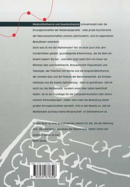 Der Lebensnerv aller intellektuellen und wissenschaftlichen Bestrebungen ist der ständige Zustrom wichtiger, ungelöster, aber im Prinzip lösbarer Probleme. Die projektive Geometrie zum Beispiel war früher eine blühende Ecke im mathemati schen Garten. Heute jedoch ist sie nicht mehr modern - einfach weil die Quelle wichtiger Probleme vor etwa hundert Jahren versiegte. Für die heute so populäre Chaostheorie dagegen interessierte sich vor einigen Jahrzehnten nur eine Handvoll weitsichtiger Abenteurer und Kenner des mathematisch Geheimnisvollen, bevor in jüngerer Zeit die Arbeiten von Lorenz, Smale, Feigenbaum, Yorke, May, Rössler und vielen anderen eine Fülle von Problemen aufwarfen, mit denen sich heutzutage die Chaologen, ihre Studenten und ihre Mitläufer beschäftigen. Diese Beispiele illustrieren deutlich George P6lyas wohlbekannte These, die Mathematik sei die Kunst des Problemlösens. Aber im Gegensatz zu Wissenschaftlern aus anderen Disziplinen benutzen die Mathematiker einen speziellen Ausdruck für die Lösung ihrer Probleme: Bei ihnen heißt er Theorem. Die Mathematik handelt von Theoremen: wie man auf sie kommt, wie man sie beweist, wie man sie verallgemeinert, wie man sie anwendet und wie man sie versteht. Die großen Fünfmöchte dem Leser die Mathematik näherbringen, indem es fünf der wichtigsten Errungenschaften der Mathematik unseres Jahrhunderts vorstellt. In diesem Buch werden Sie einige der größten Probleme, die die Mathe matik gelöst hat, kennenlernen. Ich möchte Ihnen zeigen, wie sie gelöst wurden, und vor allem, warum die Lösungen von Bedeutung sind - und dies nicht nur für Mathematiker. Die großen Fünfwilllehrreich und unterhaltsam sein; das Buch will Mathematik anhand von Beispielen und nicht von Lehrbuchsätzen vermitteln.