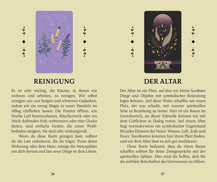 Natur, Pflanzen, Magie, Weisheit und Intuition sind seit Jahrhunderten miteinander verbunden -über alle Kulturen hinweg.Dieses Orakelkartendeck bietet uns Gelegenheiten, die individuelle Verbindung zur Natur in uns wiederzuerwecken, unsere innere Weisheit wachzurufen und die Praktiken sowie das Wissen der grünen Magie mit allen Sinnen zu erleben.