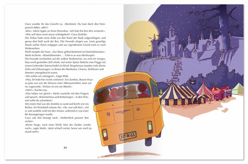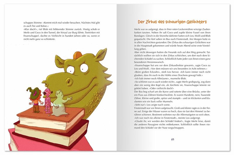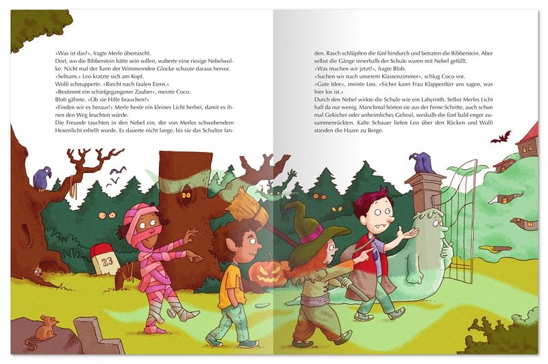 Vampir Leo, Mumie Coco, Werwolf Wolf, Hexe Merle und Schleimgeist Blob erleben jeden Tag ein neues Abenteuer: Sie begeben sich auf die Suche nach dem kichernden Totenschädel, verirren sich in der geheimnisvollen Pyramide, tricksen ein Dämoneneinhorn aus, feiern eine Geburtstagsparty im Sumpf und vieles mehr.