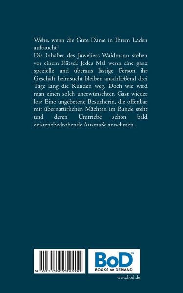 Wehe, wenn die Gute Dame in Ihrem Laden auftaucht!Die Inhaber des Juweliers Waidmann stehen vor einem Rätsel: Jedes Mal wenn eine ganz spezielle und überaus lästige Person ihr Geschäft heimsucht, bleiben anschließend drei Tage lang die Kunden weg. Doch wie wird man einen solch unerwünschten Gast wieder los? Eine ungebetene Besucherin, die offenbar mit übernatürlichen Mächten im Bunde steht und deren Umtriebe schon bald existenzbedrohende Ausmaße annehmen.