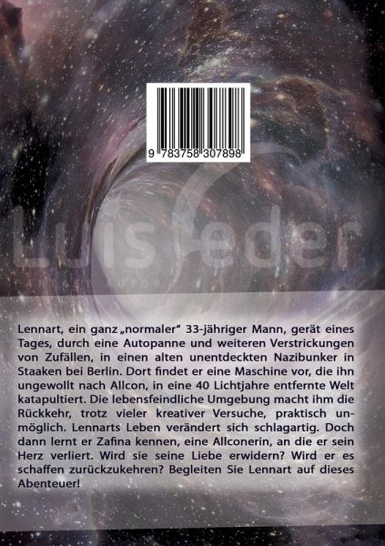 Lennart, ein ganz normaler 33-Jähriger Mann, der eigentlich ein ganz überschaubares Leben führt, gerät eines Tages, durch eine Autopanne und weiteren Verstrickungen von Zufällen, in einen alten unentdeckten Nazibunker der Anlage des Fort Hahnebergs in Staaken bei Berlin. Dort findet er eine Maschine vor, die ihn ungewollt nach Allcon, in eine 40 Lichtjahre entfernte Zivilisation katapultiert. Die lebensfeindliche Umgebung macht Lennart die Rückkehr, trotz vieler kreativer Versuche, praktisch unmöglich. Lennarts Leben verändert sich schlagartig. Doch dann lernt er Zafina kennen, eine Allconerin, an die er sein Herz verliert. Wird sie seine Liebe erwidern? Wird er es schaffen zurückzukehren? Begleiten Sie Lennart auf dieses Abenteuer!