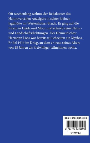Oft wochenlang wohnte der Redakteuer des Hannoverschen Anzeigers in seiner kleinen Jagdhütte im Westenholzer Bruch. Er ging auf die Pirsch in Heide und Moor und schrieb seine Natur- und Landschaftsdichtungen. Der Heimatdichter Hermann Löns war bereits zu Lebzeiten ein Mythos. Er fiel 1914 im Krieg, an dem er trotz seines Alters von 48 Jahren als Freiwilliger teilnehmen wollte.