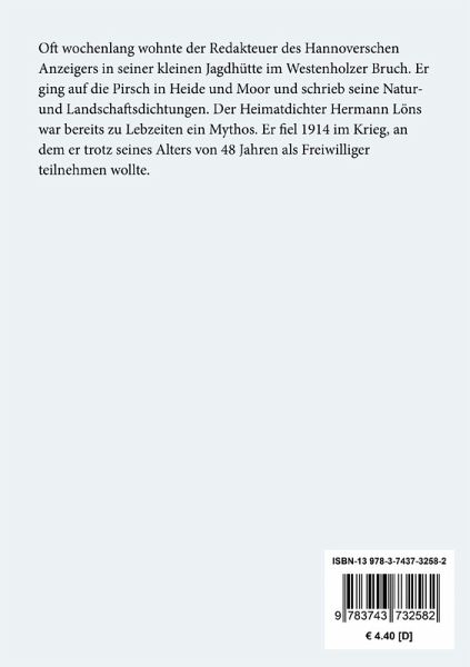 Oft wochenlang wohnte der Redakteuer des Hannoverschen Anzeigers in seiner kleinen Jagdhütte im Westenholzer Bruch. Er ging auf die Pirsch in Heide und Moor und schrieb seine Natur- und Landschaftsdichtungen. Der Heimatdichter Hermann Löns war bereits zu Lebzeiten ein Mythos. Er fiel 1914 im Krieg, an dem er trotz seines Alters von 48 Jahren als Freiwilliger teilnehmen wollte.