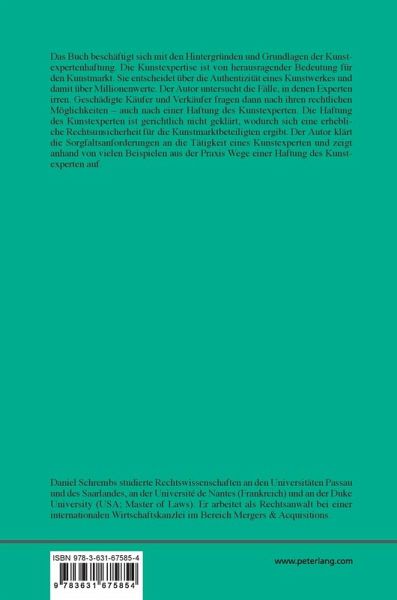 Das Buch beschäftigt sich mit den Hintergründen und Grundlagen der Kunstexpertenhaftung. Die Kunstexpertise ist von herausragender Bedeutung für den Kunstmarkt. Sie entscheidet über die Authentizität eines Kunstwerkes und damit über Millionenwerte. Der Autor untersucht die Fälle, in denen Experten irren. Geschädigte Käufer und Verkäufer fragen dann nach ihren rechtlichen Möglichkeiten - auch nach einer Haftung des Kunstexperten. Die Haftung des Kunstexperten ist gerichtlich nicht geklärt, wodurch sich eine erhebliche Rechtsunsicherheit für die Kunstmarktbeteiligten ergibt. Der Autor klärt die Sorgfaltsanforderungen an die Tätigkeit eines Kunstexperten und zeigt anhand von vielen Beispielen aus der Praxis Wege einer Haftung des Kunstexperten auf.