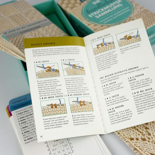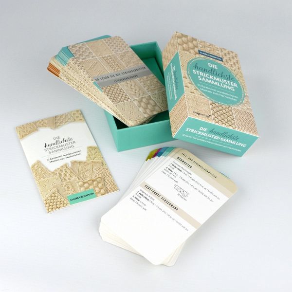 In diesem Kartenset befindet sich die handlichste Zusammenstellung von Strickmustern auf 52 Karten, die man als Stricker_in überhaupt haben kann - alles verpackt in einer kompakten Box. Jede Karte präsentiert auf der Vorderseite ein gestricktes Muster, während auf der Rückseite sowohl eine detaillierte schriftliche Anleitung als auch ein Strickdiagramm zu finden sind, um das Nachstricken zu erleichtern. Das beigefügte 16-seitige Booklet enthält einen anschaulichen Grundlagenteil mit allen Grundmaschen des Strickens. Das Kartenset in der wiederverschließbaren Box ist die kleinste To-go-Strickmustersammlung, die man bequem in der Tasche mitnehmen kann, und ist ein absolutes Must-have für Strickanfänger wie auch für Fortgeschrittene.