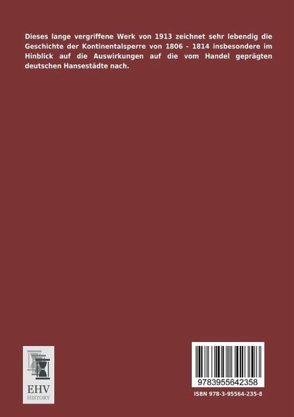 Dieses lange vergriffene Werk von 1913 zeichnet sehr lebendig die Geschichte der Kontinentalsperre von 1806 - 1814 insbesondere im Hinblick auf die Auswirkungen auf die vom Handel geprägten deutschen Hansestädte nach.