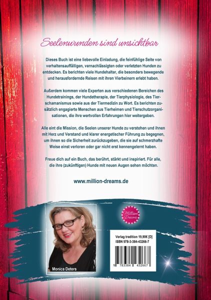 Seelenwunden sind unsichtbar!Dieses Buch ist eine liebevolle Einladung, die feinfühlige Seite von verhaltensauffälligen, vernachlässigten oder verletzten Hunden zu entdecken. Es berichten viele Hundehalter, die besonders bewegende und herausfordernde Reisen mit ihren Vierbeinern erlebt haben. Außerdem kommen viele Experten aus verschiedenen Bereichen des Hundetrainings, der Hundetherapie, der Tierphysiologie, des Tier-schamanismus sowie aus der Tiermedizin zu Wort. Es berichten zusätzlich engagierte Menschen aus Tierheimen und Tierschutzorganisationen, die ihre wertvollen Erfahrungen hier weitergeben. Alle eint die Mission, die Seelen unserer Hunde zu verstehen und ihnen mit Herz und Verstand und klarer energetischer Führung zu begegnen, um ihnen so die Sicherheit zurückzugeben, die sie auf schmerzhafte Weise einst verloren oder gar nicht erst kennengelernt haben. Freue dich auf ein Buch, das berührt, stärkt und inspiriert. Für alle, die ihre (zukünftigen) Hunde mit neuen Augen sehen möchten.