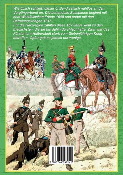 Wie üblich schließt dieser 6. Band zeitlich nahtlos an den Vorgängerband an. Die behandelte Zeitspanne beginnt mit dem Westfälischen Frieden 1648 und endet mit den Befreiungskriegen 1815. Für die Harzregion zählten diese 167 Jahre wohl zu den friedlichsten, die sie bis dahin durchlebt hatte. Zwar war insbesondere das Fürstentum Halberstadt stark vom Siebenjährigen Krieg betroffen, Opfer gab es jedoch nur wenige. Das Buch ist bebildert mit 12 farbigen und 55 schwarz/weiß Abbildungen (Fotos, Burgen-Rekonstruktionen, Stiche und Gemälde) sowie mit 19 geschichtlichen Karten, darunter 10 farbige Karten.