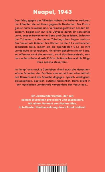 Im Kampf ums nackte Überleben nimmt auch die Menschenwürde Schaden; der Erzähler stemmt sich mit allen Mitteln des Denkens und der Sprache dagegen, zynisch, anklagend, philosophisch, poetisch, zutiefst menschlich. Dann bricht in der mythischen Landschaft Kampaniens der Vesuv aus ...