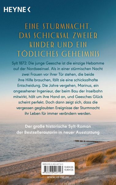 Sylt 1872: Die junge Geesche ist die einzige Hebamme auf der Nordseeinsel. Als in einer stürmischen Nacht zwei Frauen vor ihrer Tür stehen, die beide ihre Hilfe brauchen, fällt sie eine schicksalhafte Entscheidung. Die Jahre vergehen, Marinus, ein angesehener Ingenieur, der beim Bau der Inselbahn mitwirkt, hält um ihre Hand an, und Geesches Glück scheint perfekt. Doch dann zeigt sich, dass die vergessen geglaubten Ereignisse der Sturmnacht ihr Leben für immer verändern werden.