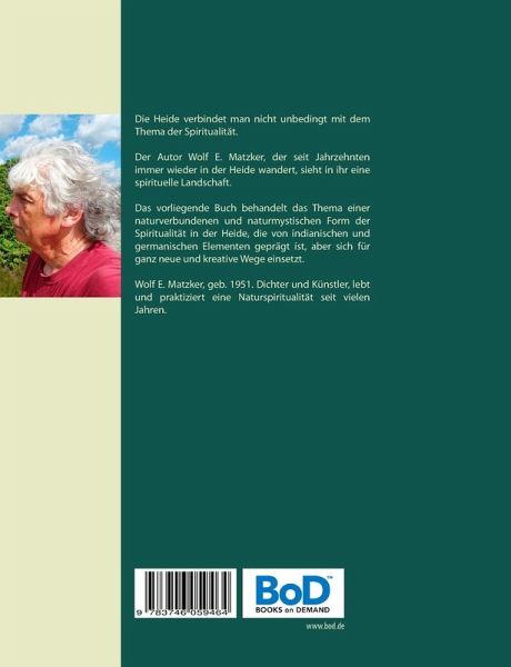 Die Heide verbindet man nicht unbedingt mit dem Thema der Spiritualität.Das sieht der Autor Wolf E. Matzker, der seit Jahrzehnten immer wieder in der Heide wandert, anders. Da er in indianischer Naturspiritualität geschult ist, sieht er in der Heide eine spirituelle Landschaft. Das vorliegende Buch behandelt das Thema einer naturverbundenen und naturmystischen Form der Spiritualität in der Heide, die von indianischen und germanischen Elementen geprägt ist, aber sich für ganz neue und kreative Wege einsetzt.