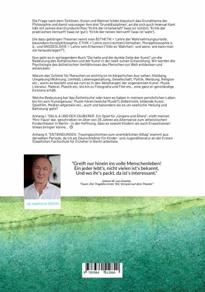 Erklärung, was ästhetisch ist. Erklärung, was Kunst ist. Erklärung, warum der Missbrauch des Ästhetischen in den Medien gefährlich ist. Erklärung, wie Kunst hilft. Plus ein Theaterstück für Jüngere und Ältere und einige 'Traumgeschichten zum unerklärlichen Alltag'.