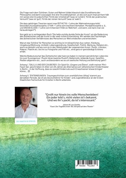 Erklärung, was ästhetisch ist. Erklärung, was Kunst ist. Erklärung, warum der Missbrauch des Ästhetischen in den Medien gefährlich ist. Erklärung, wie Kunst hilft. Plus ein Theaterstück für Jüngere und Ältere und einige 'Traumgeschichten zum unerklärlichen Alltag'.