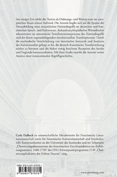 Seit einiger Zeit erlebt die Nation als Ordnungs- und Wertesystem im europäischen Raum erneut Aufwind. Die Autorin begibt sich auf die Spuren der Herausbildung eines neuzeitlichen Nationsbegriffs im deutschen und französischen Sprach- und Kulturraum. Anhand enzyklopädischer Wörterbücher rekonstruiert sie semantische Transformationsprozesse des Nationsbegriffs und der ihnen zugrundeliegenden interkulturellen Transferprozesse. Durch die methodische Verschränkung von historischer Semantik und Ansätzen des Kulturtransfers gelingt es ihr, die deutsch-französische Transferrichtung stärker zu betonen und die bisher wenig beachtete Rezeption der Antike und Englands herauszuarbeiten. Mit ihrer Studie erprobt die Autorin weiter Ansätze einer transnationalen Begriffsgeschichte.