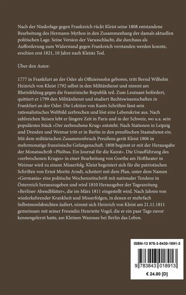 Nach der Niederlage gegen Frankreich rückt Kleist seine 1808 entstandene Bearbeitung des Hermann-Mythos in den Zusammenhang der damals aktuellen politischen Lage. Seine Version der Varusschlacht, die durchaus als Aufforderung zum Widerstand gegen Frankreich verstanden werden konnte, erschien erst 1821, 10 Jahre nach Kleists Tod.