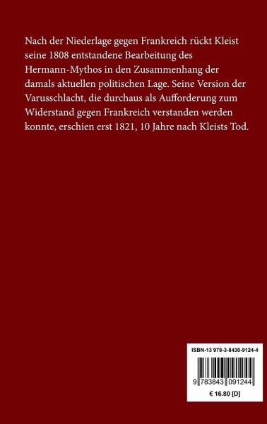 Nach der Niederlage gegen Frankreich rückt Kleist seine 1808 entstandene Bearbeitung des Hermann-Mythos in den Zusammenhang der damals aktuellen politischen Lage. Seine Version der Varusschlacht, die durchaus als Aufforderung zum Widerstand gegen Frankreich verstanden werden konnte, erschien erst 1821, 10 Jahre nach Kleists Tod.