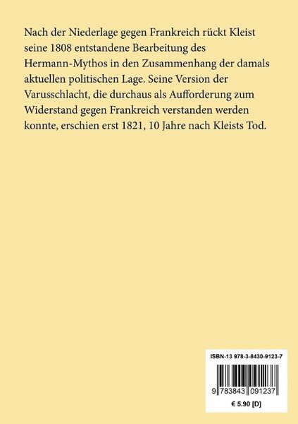 Nach der Niederlage gegen Frankreich rückt Kleist seine 1808 entstandene Bearbeitung des Hermann-Mythos in den Zusammenhang der damals aktuellen politischen Lage. Seine Version der Varusschlacht, die durchaus als Aufforderung zum Widerstand gegen Frankreich verstanden werden konnte, erschien erst 1821, 10 Jahre nach Kleists Tod.