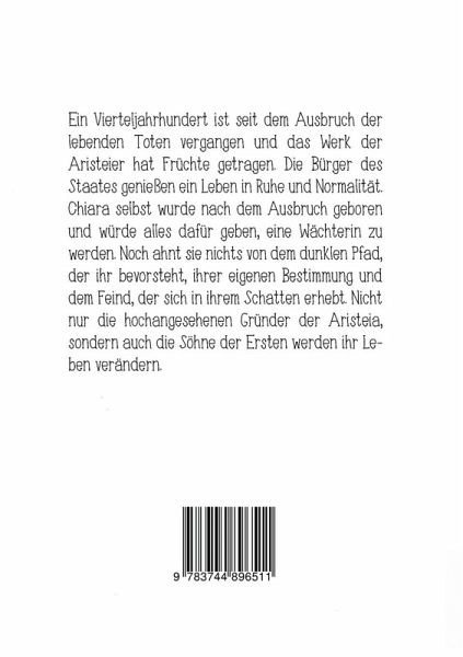 Ein Vierteljahrhundert ist seit dem Ausbruch der lebenden Toten vergangen und das Werk der Aristeier hat Früchte getragen. Die Bürger des Staates genießen ein Leben in Ruhe und Normalität. Chiara selbst wurde nach dem Ausbruch geboren und würde alles dafür geben, eine Wächterin zu werden. Noch ahnt sie nichts von dem dunklen Pfad, der ihr bevorsteht, ihrer eigenen Bestimmung und dem Feind, der sich in ihrem Schatten erhebt. Nicht nur die hochangesehenen Gründer der Aristeia, sondern auch die Söhne der Ersten werden ihr Leben verändern.