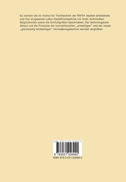 Die Bedeutung der Nadelfilztechnik hat in den letzten Jahren eine ständige Zunahme erfahren [1,2]. Sie hat sich durch das Aufkom men. hochwertiger Synthesefasern zu einer Technik für die Ferti gung einer Vielzahl von Produkten entwickelt, die nicht nur mit konventionell hergestellten textilen Flächengebilden konkurrie ren,sondern auch neue, bisher unbekannte, durch andere Metho den nicht erzielbare Eigenschaften aufweisen. Für die Eigenschaften der Nadelfilzerzeugnisse sind in erster Linie die Art des Faserstoffes, die Art der Vliesbildung und der Vernadelungstechnik in Kombination die Art mit dem Nadelwerkzeug verantwortlich zu machen. Die Herstellung von Nadelfilzprodukten besteht im wesentlichen aus zwei Verfahrensschritten: der Vliesbildung und der Vlies verfestigung. Bei der Vliesbildung gilt es, eine Faserverteilung in bezug auf Auflösung, Gleichmäßigkeit, Gewicht und orientierung einzustel len, die zur Fertigung des Endproduktes notwendig ist. Schon mit der Vliesbildung lassen sich das Aussehen und die Qualität der Nadelfilzprodukte beeinflussen. Die Herstellung von Spinnfaser vliesen erfolgt entweder durch die mechanische oder aerodynami sche Vliesbildung. Als ein weiteres Verfahren der Vliesbildung ist das Filamentvliesverfahren (Spinnvlies) zu nennen. Die mechanische Vliesverfestigung wird durch das Vernadeln er reicht. Sie läßt sich funktional mit der Gewebebindung oder Ma schenbildung der klassischen Flächengebilde-Verfahren verglei chen, wobei allerdings der Einfluß der verfestigungsmaßnahmen auf die physikalischen Endartikeleigenschaften der Nadelfilze wesentlich größer ist.