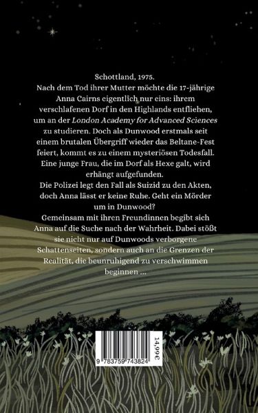 Schottland, 1975. Nach dem Tod ihrer Mutter möchte die 17-jährige Anna Cairns eigentlich nur eins: ihrem verschlafenen Dorf in den Highlands entfliehen, um an der London Academy for Advanced Sciences zu studieren. Doch als Dunwood erstmals seit einem brutalen Übergriff wieder das Beltane-Fest feiert, kommt es zu einem mysteriösen Todesfall. Eine junge Frau, die im Dorf als Hexe galt, wird erhängt aufgefunden. Die Polizei legt den Fall als Suizid zu den Akten, doch Anna lässt er keine Ruhe. Gemeinsam mit ihren Freundinnen begibt sie sich auf die Suche nach der Wahrheit. Dabei stößt sie nicht nur auf Dunwoods verborgene Schattenseiten, sondern auch an die Grenzen der Realität, die beunruhigend zu verschwimmen beginnen.
