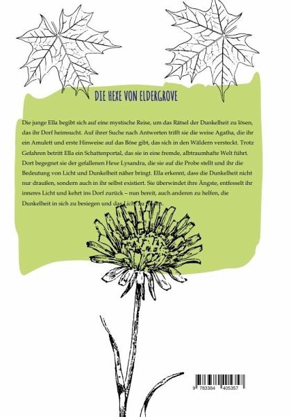 In Die Hexe von Eldergrove begibt sich die junge Ella auf eine mystische Reise, um das Rätsel der Dunkelheit zu lösen, das ihr Dorf heimsucht. Auf ihrer Suche nach Antworten trifft sie die weise Agatha, die ihr ein Amulett und erste Hinweise auf das Böse gibt, das sich in den Wäldern versteckt. Trotz Gefahren betritt Ella ein Schattenportal, das sie in eine fremde, albtraumhafte Welt führt. Dort begegnet sie der gefallenen Hexe Lysandra, die sie auf die Probe stellt und ihr die Bedeutung von Licht und Dunkelheit näher bringt. Ella erkennt, dass die Dunkelheit nicht nur draußen, sondern auch in ihr selbst existiert. Sie überwindet ihre Ängste, entfesselt ihr inneres Licht und kehrt ins Dorf zurück - nun bereit, auch anderen zu helfen, die Dunkelheit in sich zu besiegen und das Licht zu finden.