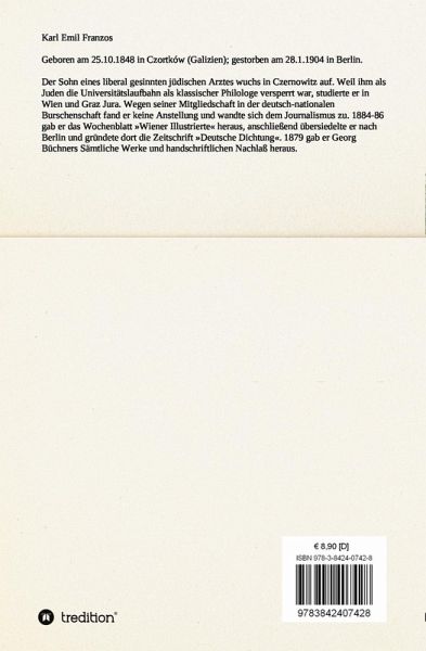 Geboren am 25.10.1848 in Czortków (Galizien); gestorben am 28.1.1904 in Berlin. Der Sohn eines liberal gesinnten jüdischen Arztes wuchs in Czernowitz auf. Weil ihm als Juden die Universitätslaufbahn als klassischer Philologe versperrt war, studierte er in Wien und Graz Jura. Wegen seiner Mitgliedschaft in der deutsch-nationalen Burschenschaft fand er keine Anstellung und wandte sich dem Journalismus zu. 1884-86 gab er das Wochenblatt »Wiener Illustrierte« heraus, anschließend übersiedelte er nach Berlin und gründete dort die Zeitschrift »Deutsche Dichtung«. 1879 gab er Georg Büchners Sämtliche Werke und handschriftlichen Nachlaß heraus.