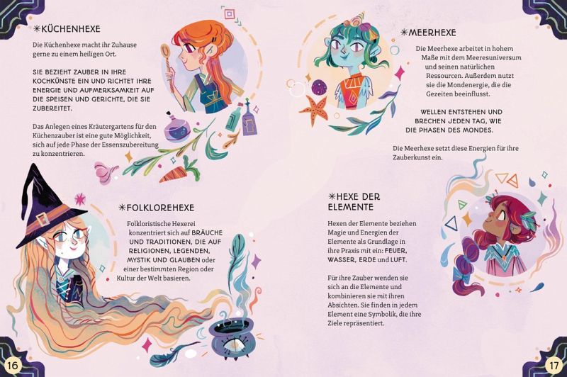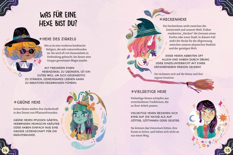 Dieses kleine Büchlein hat es in sich! Es ist Handbuch und Tagebuch in einem und ermutigt Kinder, schon in jungen Jahren ihre eigene Spiritualität zu erforschen. Der Begriff Hexe steht hierbei für Menschen, die wissen, dass ihre Stärke aus ihrem Inneren kommt. Und so vermittelt dies liebevoll gestaltete Buch erste Einblicke in verschiedene Bereiche der Hexenkunst. Die kleinen Leserinnen werden altersgerecht durch die Entdeckung von Kräutern, Kristallen, Mondphasen und Farbtherapie begleitet. Sie finden Werkzeuge der Magie und wie sie sich mit der Natur verbinden können. Sie erlernen, wie sie ihre Energie für Erfolg, Glück, Ruhe und Freundschaft einsetzen können.ù
