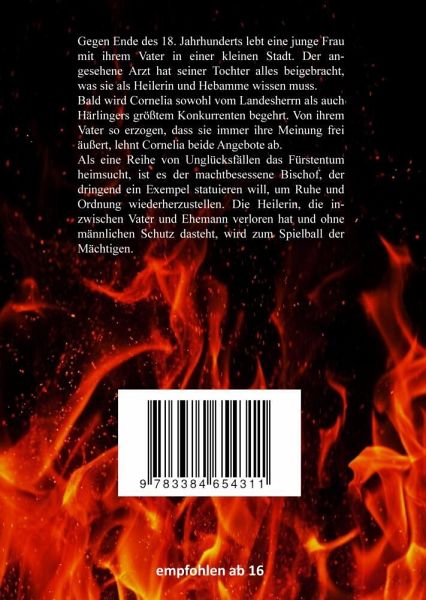 Gegen Ende des 18. Jahrhunderts lebt eine junge Frau mit ihrem Vater in einer kleinen Stadt. Der angesehene Arzt hat seiner Tochter alles beigebracht, was sie als Heilerin und Hebamme wissen muss. Bald wird Cornelia sowohl vom Landesherrn als auch Härlingers größtem Konkurrenten begehrt. Von ihrem Vater so erzogen, dass sie immer ihre Meinung frei äußert, lehnt Cornelia beide Angebote ab. Als eine Reihe von Unglücksfällen das Fürstentum heimsucht, ist es der machtbesessene Bischof, der dringend ein Exempel statuieren will, um Ruhe und Ordnung wiederherzustellen. Die Heilerin, die inzwischen Vater und Ehemann verloren hat und ohne männlichen Schutz dasteht, wird zum Spielball der Mächtigen.Die Handlung und alle Personen sind frei erfunden. Jegliche Ähnlichkeit mit lebenden oder realen Personen ist rein zufällig und nicht beabsichtigt. Die Orte im Roman dagegen wurden von tatsächlich existierenden Orten inspiriert.
