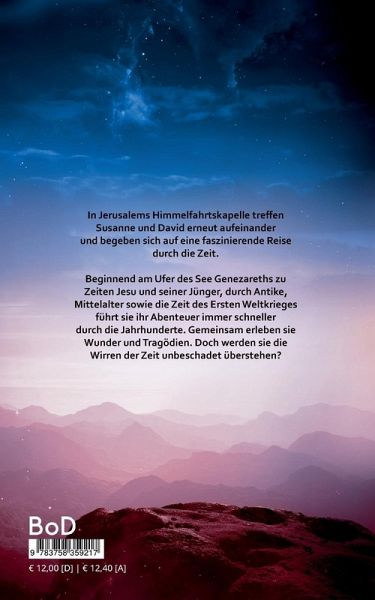 In Jerusalems Himmelfahrtskapelle treffen Susanne und David erneut aufeinander und begeben sich auf eine faszinierende Reise durch die Zeit.Beginnend am Ufer des See Genezareths zu Zeiten Jesu und seiner Jünger, durch Antike, Mittelalter sowie die Zeit des Ersten Weltkrieges führt sie ihr Abenteuer immer schneller durch die Jahrhunderte. Gemeinsam erleben sie Wunder und Tragödien. Doch werden sie die Wirren der Zeit unbeschadet überstehen?