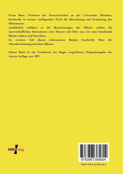 Franz Baur, Professor der Forstwirtschaft an der Universität München, beschreibt in seinem vorliegenden Werk die Berechnung und Ermittlung der Holzmassen.