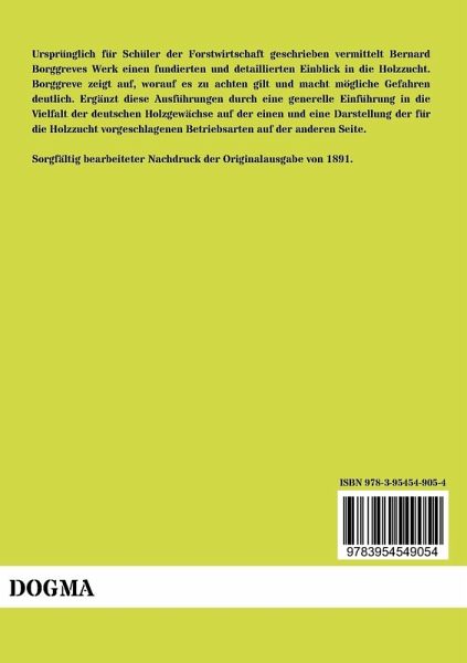 Ursprünglich für Schüler der Forstwirtschaft geschrieben vermittelt Bernard Borggreves Werk einen fundierten und detaillierten Einblick in die Holzzucht. Borggreve zeigt auf, worauf es zu achten gilt und macht mögliche Gefahren deutlich. Ergänzt diese Ausführungen durch eine generelle Einführung in die Vielfalt der deutschen Holzgewächse auf der einen und eine Darstellung der für die Holzzucht vorgeschlagenen Betriebsarten auf der anderen Seite.