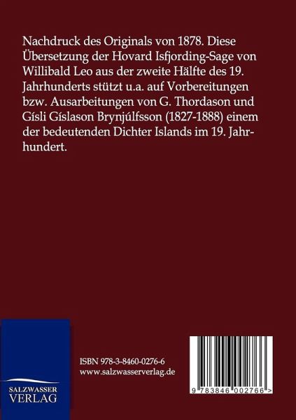 Nachdruck des Originals von 1878. Diese Übersetzung der Hovard Isfjording-Sage von Willibald Leo aus der zweite Hälfte des 19. Jahrhunderts stützt u.a. auf Vorbereitungen bzw. Ausarbeitungen von G. Thordason und Gísli Gíslason Brynjúlfsson (1827-1888) einem der bedeutenden Dichter Islands im 19. Jahrhundert.
