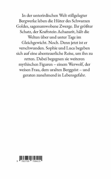 In der unterirdischen Welt stillgelegter Bergwerke leben die Hüter des Schwarzen Goldes, sagenumwobene Zwerge. Ihr größter Schatz, der Kraftstein Achazurit, hält die Welten über und unter Tage im Gleichgewicht. Noch. Denn jetzt ist er verschwunden. Sophie und Luca begeben sich auf eine abenteuerliche Reise, um ihn zu retten. Dabei begegnen sie weiteren mythischen Figuren - einem Werwolf, der weisen Frau, dem uralten Berggeist - und geraten zunehmend in Lebensgefahr.