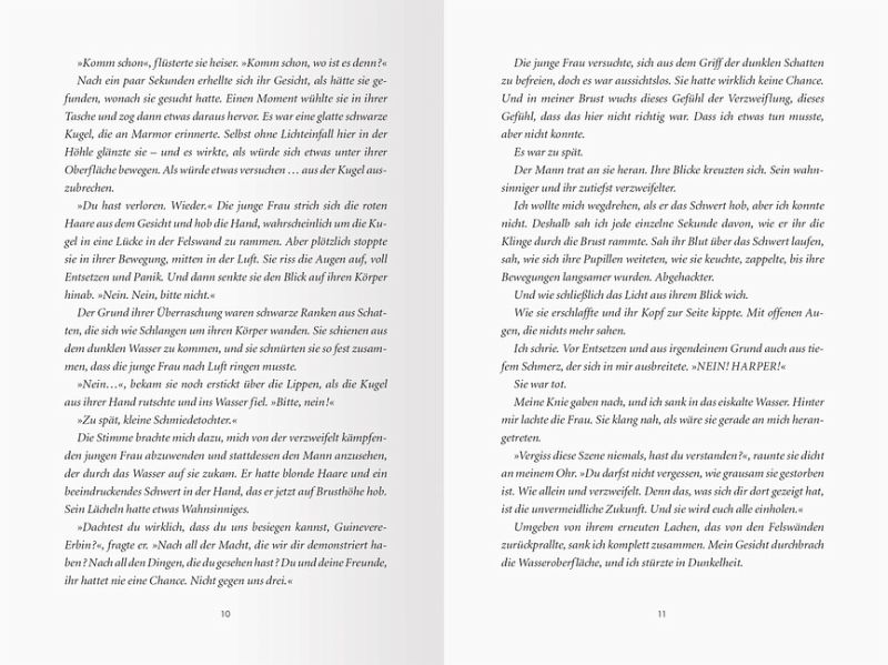 Es gibt zwar noch ein paar interessante Visionen, auch aus der Vergangenheit, und ein paar Verknüpfungen von damals zur heutigen Zeit fand ich echt innovativ umgesetzt, wie z. B. die des heiligen Grals, aber an sich kam mir hier auch irgendwie die Magie zu kurz, weil der Fokus doch recht auf den persönlichen Schicksalen und Entwicklungen lag.
