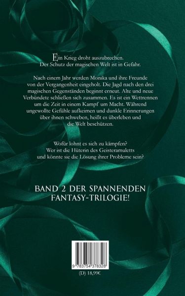 Das düstere Fantasy-Abenteuer um Monika und ihre Freunde geht weiter.Die Vergangenheit holt sie ein und Monika muss sich erneut einem bitteren Kampf stellen.Nach einem Jahr voll vermeintlichem Glück beginnt die Jagd nach den drei magischen Gegenständen erneut. Die magische Welt schwebt in Gefahr, die Barriere droht zu fallen und ein Krieg auszubrechen.Um an allen Fronten kämpfen zu können, müssen sich Feinde und Freunde verbünden und gemeinsam gegen die Gefahren stellen. Dabei keimen unerwartete Gefühle auf und Dämonen der Vergangenheit werden geweckt.Können die Freunde die nötige Stärke aufbringen, der Versuchung nach Macht widerstehen und einander vertrauen?Wer ist die Hüterin des Geisteramuletts? Und könnte sie dabei helfen, die Welt zu retten?