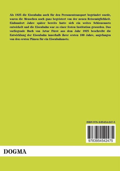 Als 1825 die Eisenbahn auch für den Personentransport begründet wurde, waren die Menschen noch ganz begeistert von der neuen Reisemöglichkeit. Einhundert Jahre später bereits hatte sich ein weites Schienennetz entwickelt und die Eisenbahn war zu einer festen Institution geworden. Das vorliegende Buch von Artur Fürst aus dem Jahr 1925 beschreibt die Entwicklung der Eisenbahn innerhalb ihrer ersten 100 Jahre, angefangen von den ersten Plänen für ein Eisenbahnnetz.
