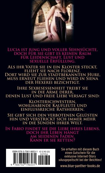 Lucia ist jung und voller Sehnsüchte, doch für sie gibt es keinen Raum für Leidenschaft, Lust und sexuelle Erfüllung. Als ihr Vater sie in ein Kloster steckt, flieht sie nach Florenz. Dort wird sie zur stadtbekannten Hure, muss erneut fliehen und wird in Siena der Hexerei bezichtigt. Ihre Sexbesessenheit treibt sie in die Arme derer, denen Lust und freie Liebe versagt sind: Klosterschwestern, wohlhabende Kaufleute und einflussreiche Ratsherren. Sie gibt sich den verbotenen Gelüsten hin und verstrickt sich immer mehr in die Sünden ihrer Welt. In Fabio findet sie die Liebe ihres Lebens, doch ihr Leben hängt am seidenen Faden. Kann er sie retten?Diese Ausgabe ist vollständig, unzensiert und enthält keine gekürzten erotischen Szenen.