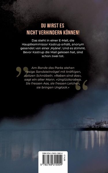 Noch genießt Hauptkommissar Bernd Kastrup, der mal wieder nicht schlafen kann, bei einem Spaziergang die nächtliche Ruhe in Hamburg. Bis im Trauns Park, den er gerade durchquert, mehrere Schüsse fallen. Eine Frau ist verletzt und zwei Männer liegen tot am Boden. Da hat er die Email von der „Hyäne“ noch nicht gelesen, die er am Vorabend bekommen hat und die die beiden Toten ankündigt.