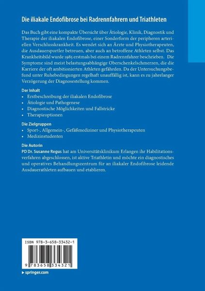 Das Buch gibt eine kompakte Übersicht über Ätiologie, Klinik, Diagnostik und Therapie der iliakalen Endofibrose, einer Sonderform der peripheren arteriellen Verschlusskrankheit. Es wendet sich an Ärzte und Physiotherapeuten, die Ausdauersportler betreuen, aber auch an betroffene Athleten selbst. Das Krankheitsbild wurde 1985 erstmals bei einem Radrennfahrer beschrieben. Die Symptome sind meist belastungsabhängige Oberschenkelschmerzen, die die Karriere der oft ambitionierten Athleten gefährden. Da der Untersuchungsbefund unter Ruhebedingungen regelhaft unauffällig ist, kann es zu jahrelanger Verzögerung der Diagnosestellung kommen.