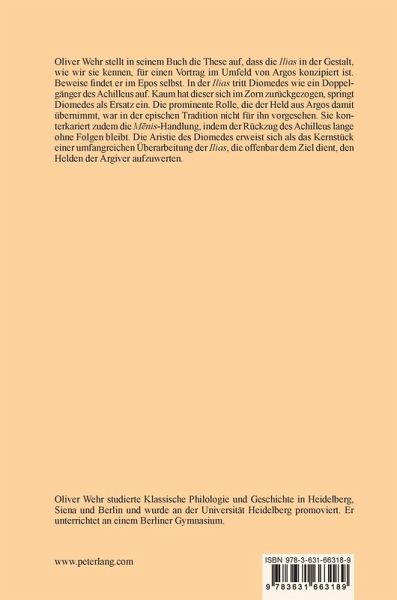 Oliver Wehr stellt in seinem Buch die These auf, dass die Ilias in der Gestalt, wie wir sie kennen, für einen Vortrag im Umfeld von Argos konzipiert ist. Beweise findet er im Epos selbst. In der Ilias tritt Diomedes wie ein Doppelgänger des Achilleus auf. Kaum hat dieser sich im Zorn zurückgezogen, springt Diomedes als Ersatz ein. Die prominente Rolle, die der Held aus Argos damit übernimmt, war in der epischen Tradition nicht für ihn vorgesehen. Sie konterkariert zudem die M nis-Handlung, indem der Rückzug des Achilleus lange ohne Folgen bleibt. Die Aristie des Diomedes erweist sich als das Kernstück einer umfangreichen Überarbeitung der Ilias, die offenbar dem Ziel dient, den Helden der Argiver aufzuwerten.