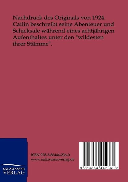 Nachdruck des Originals von 1924. Catlin beschreibt seine Abenteuer und Schicksale während eines achtjährigen Aufenthaltes unter den "wildesten ihrer Stämme".