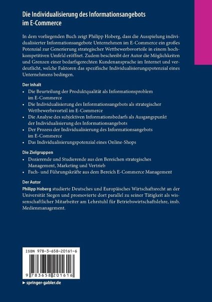 Die Beurteilung der Produktqualität als Informationsproblem im E-Commerce. - Die Individualisierung des Informationsangebots als strategischer Wettbewerbsvorteil im E-Commerce. - Die Analyse des subjektiven Informationsbedarfs als Ausgangspunkt der Individualisierung des Informationsangebots. - Der Prozess der Individualisierung des Informationsangebots im E-Commerce. - Das Individualisierungspotenzial eines Online-Shops .