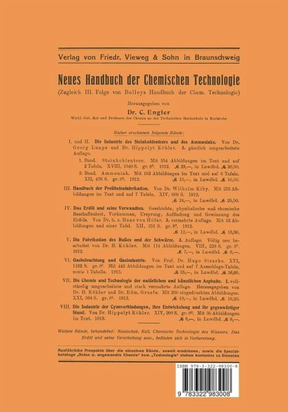 I. Wissenschaftlicher Teil.- Erstes Kapitel. Die Chemie des Cyans und der Cyanverbindungen.- II. Technischer Teil.- Zweites Kapitel. Die Fabrikation von Cyanverbindungen aus tierischen Abfällen und Produkten der trockenen Destillation.- Drittes Kapitel. Gewinnung von Cyanverbindungen aus dem Stickstoff der atmosphärischen Luft.- Viertes Kapitel. Gewinnung von Cyanverbindungen aus Ammoniakstickstoff.- Fünftes Kapitel. Verarbeitung von Rhodan- und Ferrocyansalzen auf andere Cyanverbindungen.- III. Analytischer Teil.- Sechstes Kapitel. Prüfung und Untersuchung der Cyanverbindungen.- Nachträge.- Namenregister.